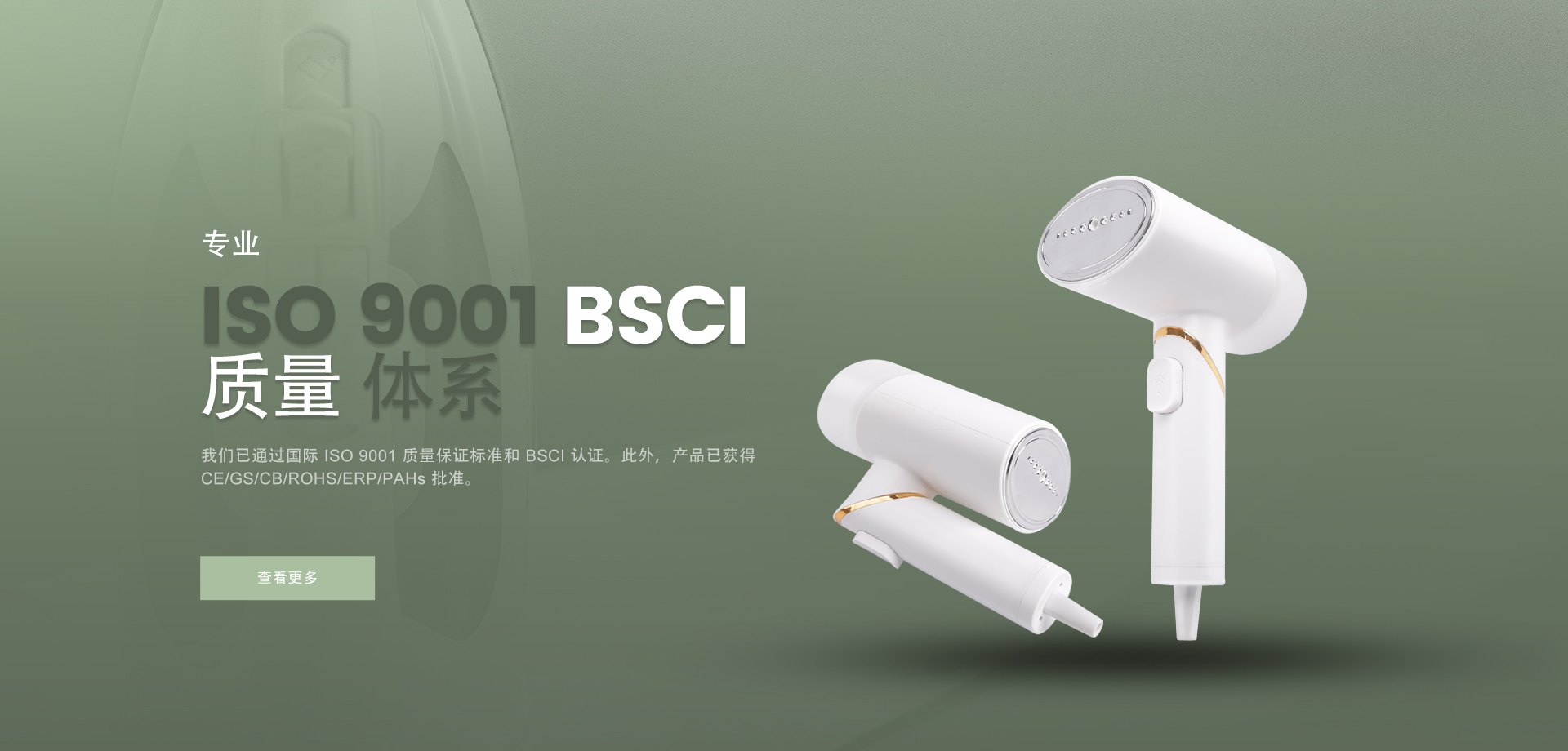 我們是一家專業(yè)的制造商和出口商,提供設(shè)計、開發(fā)、生產(chǎn)、銷售和相關(guān)服務(wù),產(chǎn)品包括電熨斗、手持式蒸汽掛燙機、蒸汽刷等。 美威工廠占地4000平方米,擁有雄厚的技術(shù)力量和先進的設(shè)備,可以滿足您對生產(chǎn)能力和質(zhì)量的各個方面的要求,目前已通過國際 ISO 9001 質(zhì)量保證標(biāo)準(zhǔn)和 BSCI 認證。此外,產(chǎn)品獲得 CE/GS/CB/ROHS/ERP/PAHs 批準(zhǔn),并遠銷歐洲、中東、俄羅斯、亞洲和南美等。